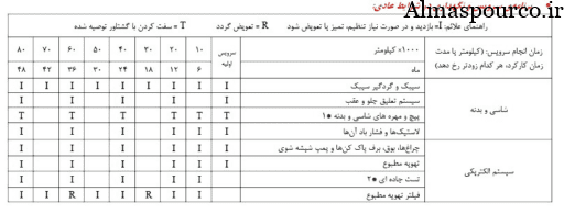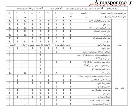 جدول سرویس دوره ای خودرو